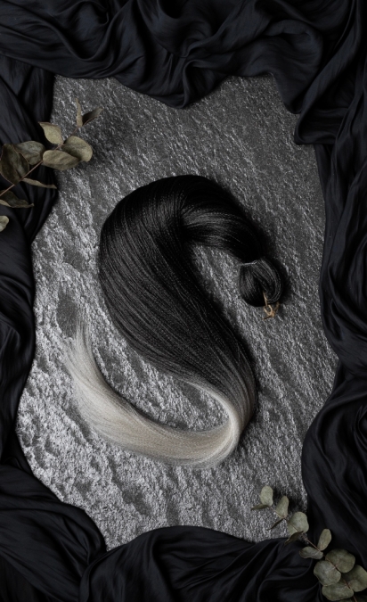 Korkealaatuinen hiuskuitu jonka taitettu pituus on 70cm (70+70). Paketissa on noin 85g kuitua.