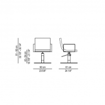 Verhoiltu asiakastuoli, jossa on mattamustat metalliset käsinojat mattamustalla pyöreällä teräsjalustalla, jossa on 360° pyörivä ja lukittava hydraulinen pumppu. Iron Black -muotoilutuoli asettaa asiakkaan pystyasentoon samalla antaen sivutilaa liikkumiselle. Metalliset käsinojat mahdollistavat asiakkaan asennon muuttamisen ajan myötä ja pysymisen mukavana.