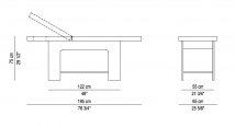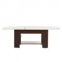 Hoito- ja hierontapöytä. 80mm paksu vaahtomuovipatja mahonkiviimeistellyllä jalalla, jonka välissä hylly. Manuaalisesti säädettävä kasvo-ja selkäreikä. Valkoinen, mutta saatavilla myös muissa skai-verhoiluväreissä.