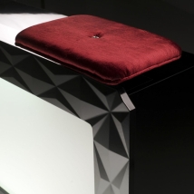 Takavalaistu vastaanottotiski mustalla lakatulla kehyksellä. Takaosan voit valita valkoisena tai mustana laminaattina. Yksi lukittava laatikko ja ulosvedettävä näppäimistöhylly. Tiskin samettityynyn värin voit valita valikoimastamme.