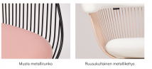 Kevyttä estetiikkaa, joka on voittanut monien salonkien suosion, tasapainottaa sen mustan tai ruusukullanvärisen kromatun teräsrungon vankkuus.