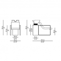 Yhden istuttava pesuypaikka, jossa on musta teräksinen pesupylväs, varustettuna mustalla ergonomisella kallistettavalla keramiikka-altaalla, mustalla sekoittavalla hanalla, mustalla käsihuuhtelulla ja jäteveden ansalla. Kallistettava tuoli, jossa on mattamustat teräskäsinojat, jotka eivät ole riippuvaisia pylväästä, helpottaakseen käyttäjän koon säätämistä ja puhdistusta. Ihanteellinen pesuyksikön nopeaan työhön pyrkivälle salonkille, joka etsii käytännöllistä ja yksinkertaista ratkaisua.