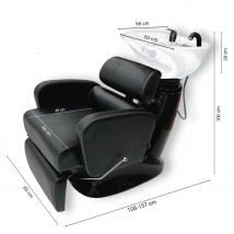 Sakai Re-Flex pesupaikan joustava selkänoja takaa asiakkaallesi parhaan mahdollisen istuma-asennon! Mekaanisesti ylös nostettava jalkatuki lisää käyttömukavuutta edelleen. Valkoiset tikkaukset ovat näyttävä ykistyiskohta. Re-Flex pesupaikka on kompaktin kokoinen ja sopii erinomaisesti monenkokoisiin tiloihin. Kallistuvan keraamisen altaan voit valita joko mustana tai valkoisena. Verhoilu on käyttöä ja puhdistusta hyvin kestävää huonekaluarelaania.