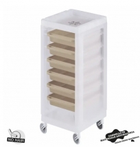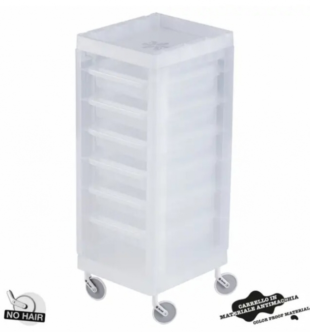 City työtarvikevaunussa on kestävä muovinen runko ja umpinaiset sivuosat, joten tarvikkeesi ovat suojassa pölyltä. Tukevat pyörät , 6 laatikkoa, jotka voit kiinnittää halutessasi kärryn sivuun.Avoin etu ja takaosa. Materiaali on hiusvärin kestävää, joten kärry säilyy siistinä!