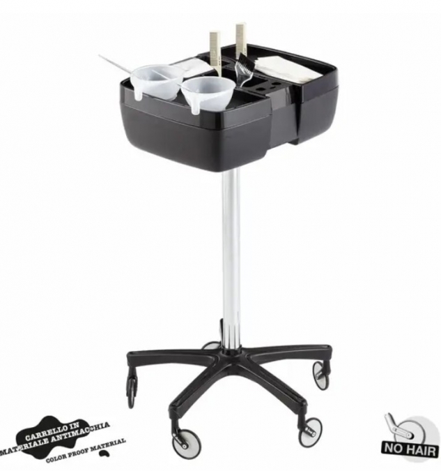 Tämä kampaajan kärry, suunniteltu tekemään työskentelystä omassa salongissa tehokkaampaa, on saatavilla myös Ceriottin ainutlaatuisilla NO-HAIR-pyörillä. Näiden pyörien ohuempi rakenne vähentää lattian kanssa kosketuksessa olevaa pintaa, minkä ansiosta ne keräävät vähemmän hiuksia ja pysyvät puhtaana ja toimivina.