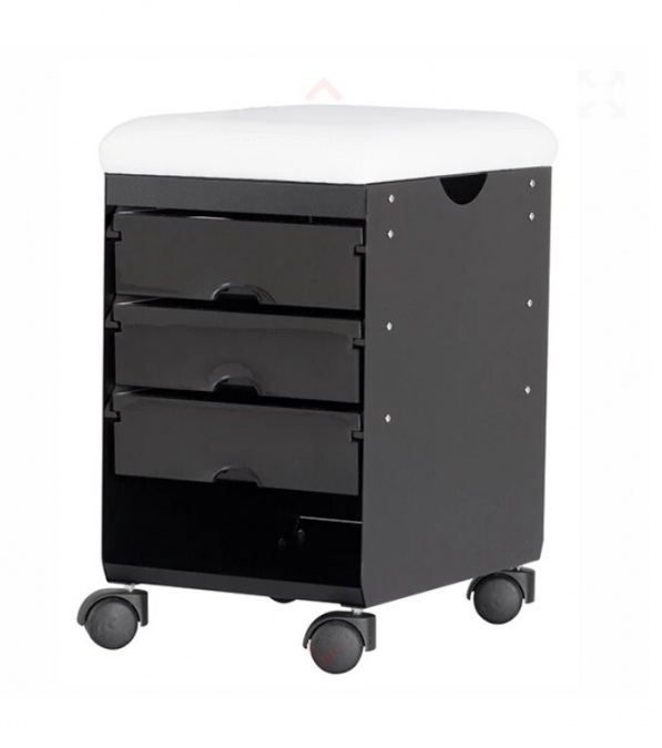 Cube Manicure on metallinen kauneuskärry, jossa on kolme liukuvaa ja irrotettavaa laatikkoa. Kärry sisältää pehmustetun istuimen, jonka verhoilun voi valita mieleisekseen.