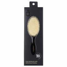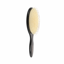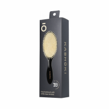 - Hienoimpien valkoisten villisian harjasten ja nylonpiikkien sekoitus harjaa hiukset pehmeästi vahingoittamatta niitä