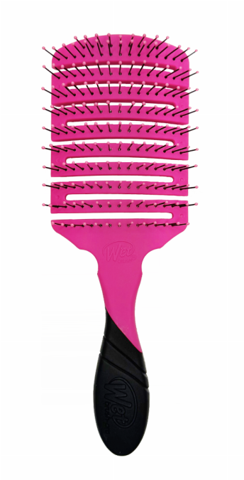 WetBrush Flex Dry Paddle Detangler -harjan innovatiivinen, ilmastoitu muotoilu nopeuttaa hiusten kuivumista samalla kun joustavat harjakset mukautuvat hiuspohjaan, tarjoten miellyttävän ja tehokkaan harjauskokemuksen.