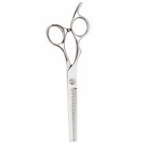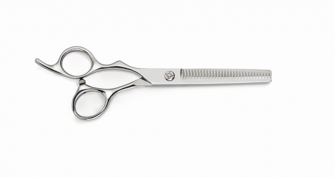 Puoliergonominen muotoilusaksi kiinteällä sormituella takaa hyvän otteen työhön. Taivutettu anatominen sormilenkki lisää käyttömukavuutta. 30 kaarevaa hammasta. Kaarevuus hampaissa ehkäisee leikkaamattomien hiusten vaurioitumista, koska käden liike on yleensä leikattaessa kaartuva.