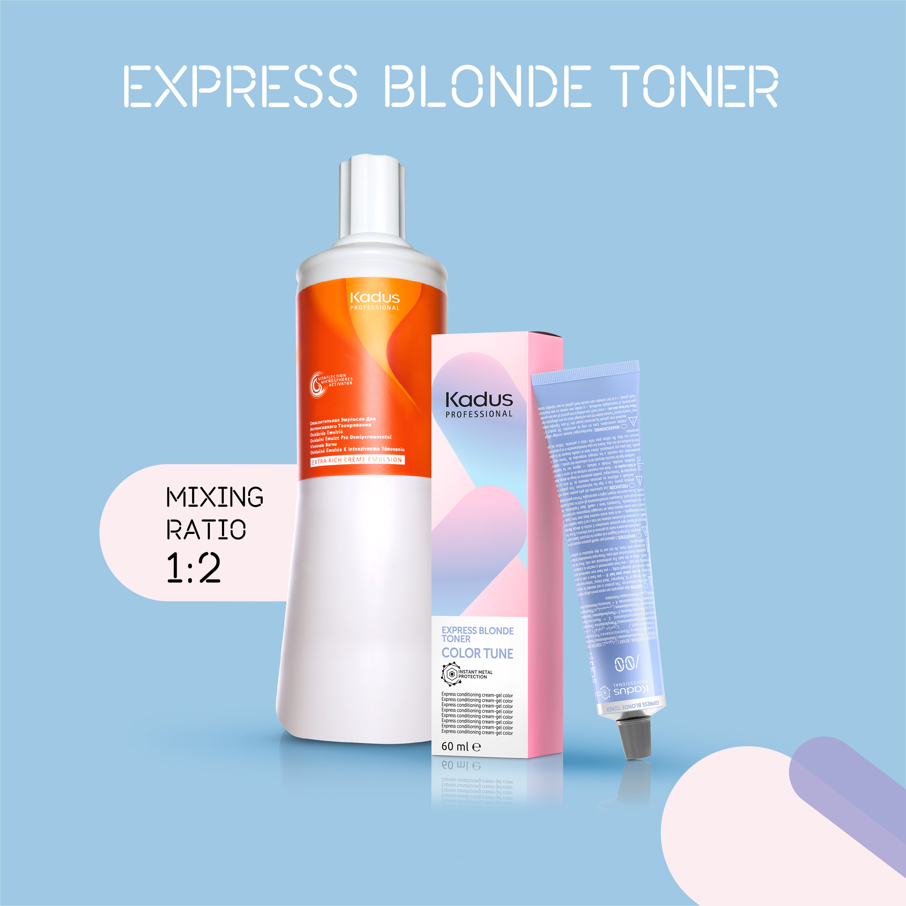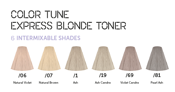 Sävyt, jotka ovat suunniteltu täydellisten vaaleiden hiusten värjäyksiin! Color Tune Express Blonde Tonerilla! Blonde Tonereilla luot täydellisen ja varman vaalean lopputuloksen ja intensiivisen kiillon. Saatavilla 6 toisiinsa sekoitettavaa sävyä – rajattomasti sävymahdollisuuksia.