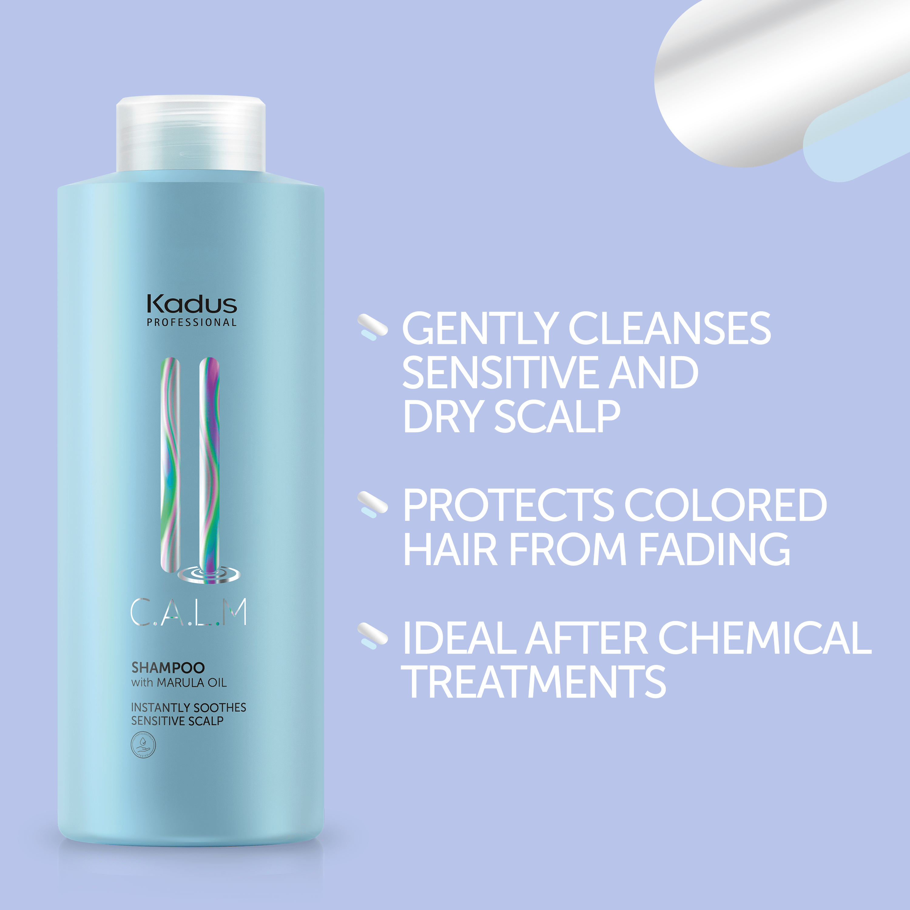 Rauhoittava ja hellävarainen shampoo herkälle huspohjalle. Puhdistaa hellävaraisesti herkän ja kuivan hiuspohjan. Auttaa suojaamaan värjättyjä hiuksia haalistumiselta. Ihanteellinen käytettäväksi kemiallisten käsittelyjen jälkeen. Ei eläinperäisiä ainesosia. Ei silikoneja. Sisältää rauhoittavaa Marula-öljyä. Käyttö: Hiero kosteisiin hiuksiin. Huuhtele.