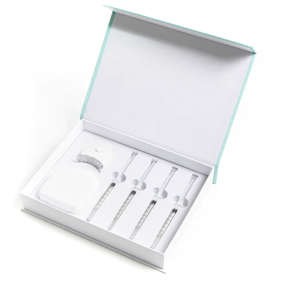 Pakkaukseen kuuluu: 4 x 3 ml valkaisuaineruiskua, viiden polttimon LED-laservalo paristoilla, yksilölliseen käyttöön muokattavat muotit ylä- ja alahampaille, muovinen säilytysrasia. Hammasmuotit ovat henkilökohtaisia ja niille riittää vesipesu veden alla käytön jälkeen. Muotit ovat valmistettu muovista ja halutessa ne voi pestä tiskiaineella käsin.