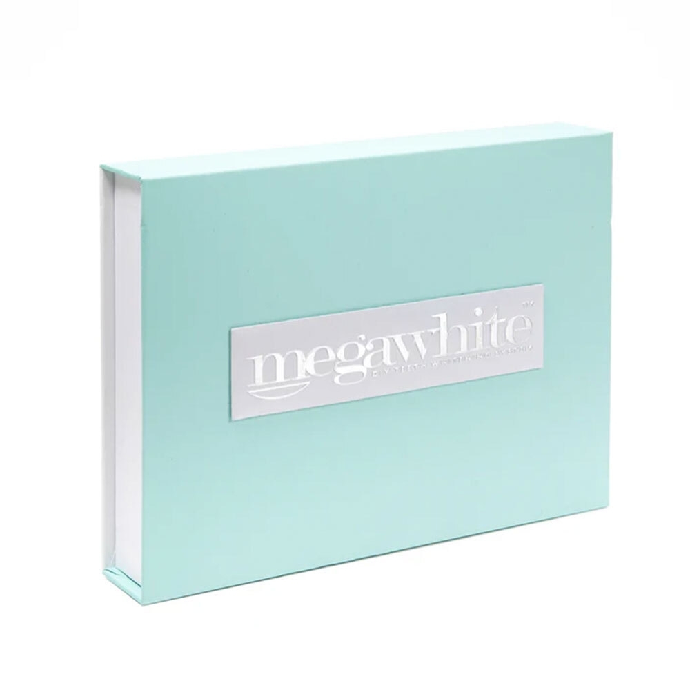 Megawhite Teeth Whitening Home Kit- hampaiden kotivalkaisupakkaus sisältää kaiken mitä tarvitset hampaiden valkaisuun kotona. Megawhite hampaiden kotivalkaisu on peroksiditon, kivuton, välittömät vaikutukset, luonnolliset raaka-aineet, vegaaninen, puhdistaa kruunut ja laminaatit, Blue Light -teknologia.