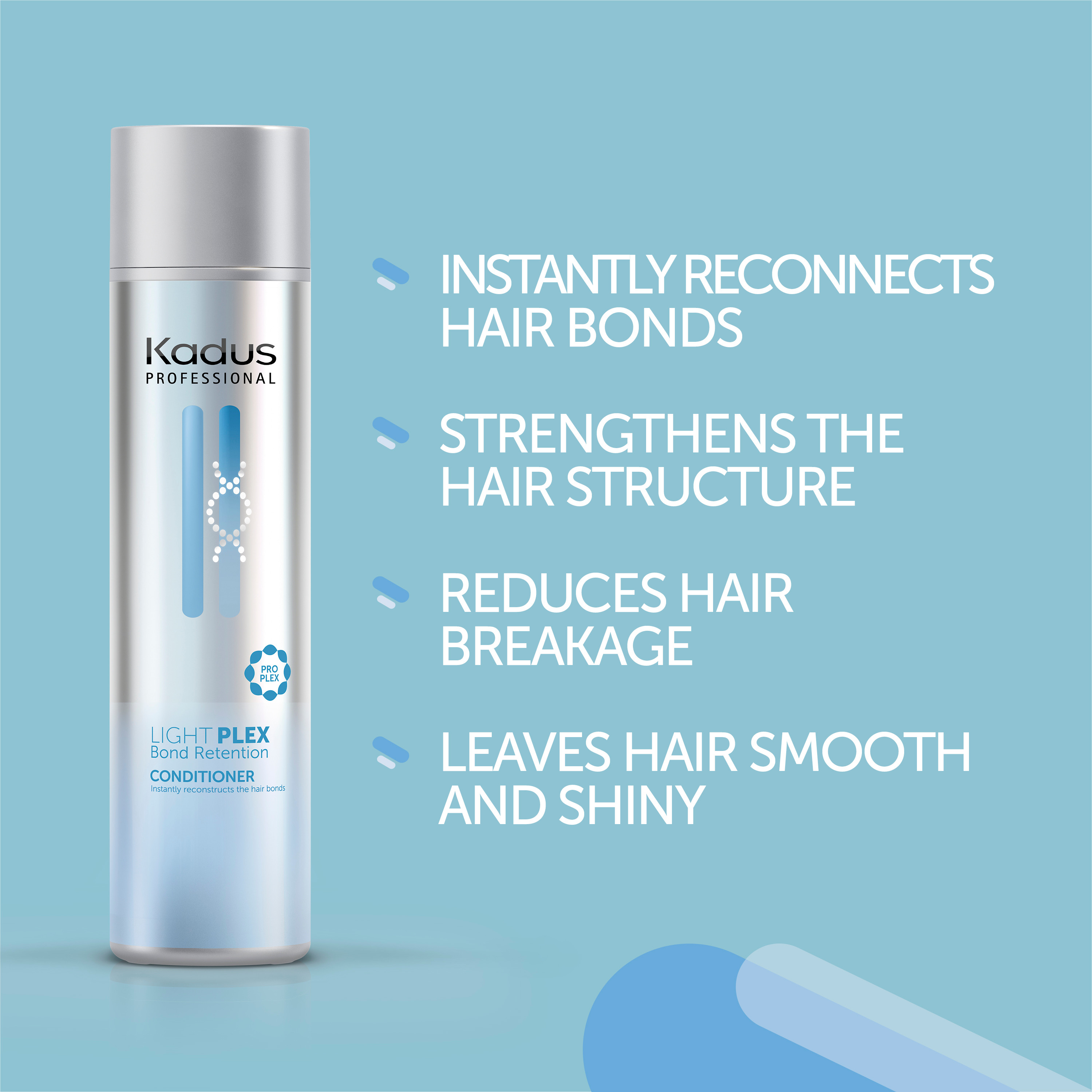 LIGHTPLEX Bond Retention Conditioner sisältää hiusta vahvistavan PROPLEX-teknologian. Hoito vahvistaa ja palauttaa hiusrakenteen jäntevyyden kemiallisen käsittelyn jälkeen sekä tulee hiusten hyvinvointia kotikäytössä. Soveltuu vaurioituneille hiuksille. Käyttö: Hiero kosteisiin hiuksiin 1-3 minuutin ajan. Huuhtele.