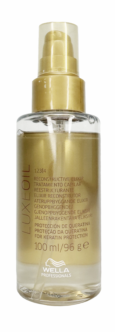 Kevyt keratiinipohjainen Wella System Professional LuxeOil Reconstructive Elixir hiusöljy kosteuttaa, rakennepaikkaa ja jälleenrakentaa hiuksia. Korjaa auringon tai kemiallisten käsittelyjen aiheuttamia vaurioita. Tuote sisältää mm. Argan-öljyä, mikä pehmentää ja ravitsee hiuksia. Jojobaöljy suojaa ja kosteuttaa shampoopesun jälkeen ja manteliöljy kiillottaa ja hoitaa.