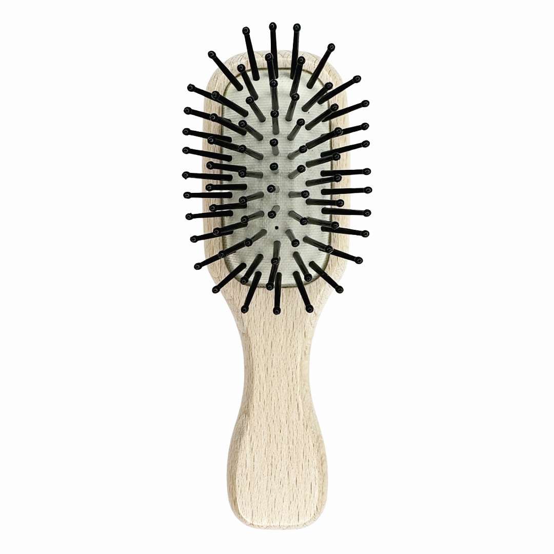 Aito puuvarsi antaa harjalle luonnollisen ja laadukkaan viimeistelyn. Harjojen muovipiikit ja kuminen pohja tekevät harjaamisesta hellävaraista ja miellyttävää.