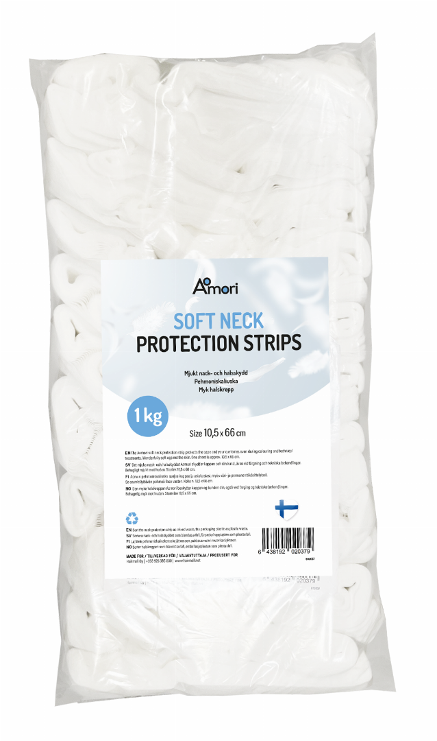 Aomori pehmoniskaliuska suojaa kappaa ja asiakastasi, myös väri- ja permanenttikäsittelyissä. Se on miellyttävän pehmeä ihoa vasten, sopii herkällekin iholle. Koko n. 10,5 x 66 cm. Paketissa n. 300-310 liuskaa. Valmistettu Suomessa.