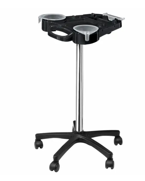Minimalistinen värjäysassistentti. Kaksi värjäyskulhoa ja paikka foliolle. Väri musta