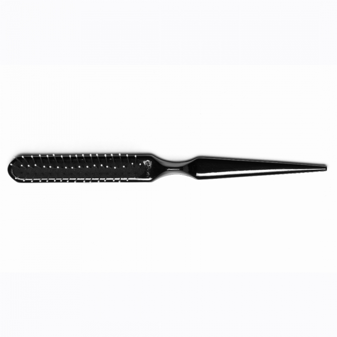 Borste med metallpiggar och gummibotten för föning av kort hår. Dela in året i sektioner med borstens smala spets. Perfekt vid klippning av herrar. Reder även ut längre hår.