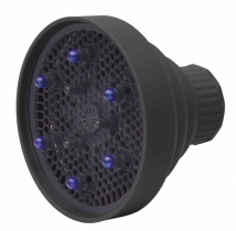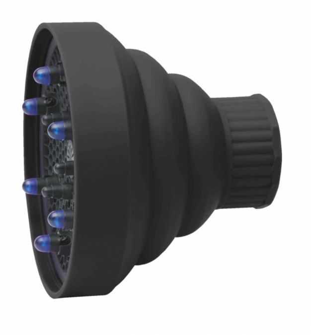 Diffusern Ultron är tillverkad av värmeisolerande silikon. Materialet är mjukt och lätt och underlättar både arbete och rengöring. Diffusern är hopfällbar och kan därför förvaras även i små utrymmen. Passar alla 20 cm långa fönar.