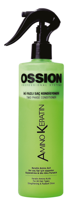 Ossion Aminokeratin Two Phase Conditioner är framtaget för att passa alla hårtyper. Berikat med keratin som hjälper till att stärka håret inifrån och ut. Minskar flygigt hår utan att tynga ner det och ger strålande glans. Lämpligt för dagligt bruk.