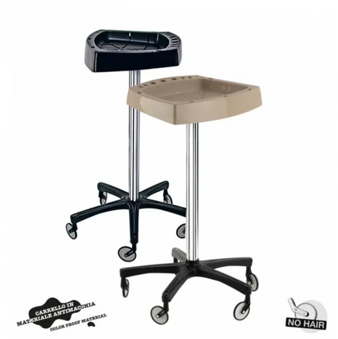 Duty vagnen är utformad för att göra ditt arbete enklare. Den har fem löstagbara skålar för extra bekvämlighet och platser för kammar och borstar, så att dina verktyg hålls organiserade och lättåtkomliga.