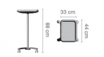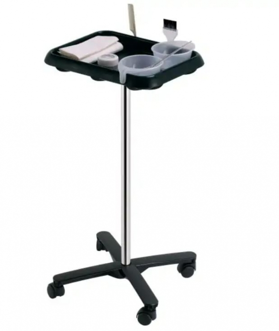 En minimalistisk färgassistent med två färgskålar och avsedda platser för penslar eller kammar. Färgen på enheten är svart