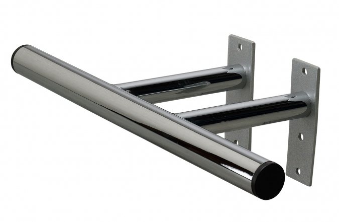 Det kromade fotstödet PI monteras på väggen och underlättar därmed städningen eftersom golvytan lämnas fri. Fästskruvar ingår. Storlek: B40 x D19 cm.