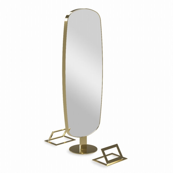 Elegant spegelkundplats för två personer, med ram i polerad guldvinylharts. Fotstöden ingår inte i priset.