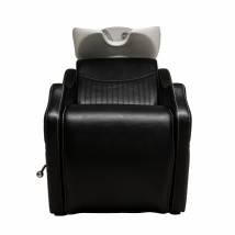 Den lyxiga schamponeringen Sakai Atlantis charmar alla! Stolens fjädrade sits och rejäla klädsel gör den mjuk och extremt bekväm att sitta i. Det höjbara fotstödet tryggar ännu bättre ställning. Den nya lutbara skålen ger dig ännu mer arbetsyta. Schamponeringen är klädd i hållbart skinnliknande möbelarelan. De ljusa stygnen gör ett snyggt intryck. Den nya bredare skålen underlättar arbetet! En skönhet som garanterat drar blickarna till sig och blir pärlan i din salong!
