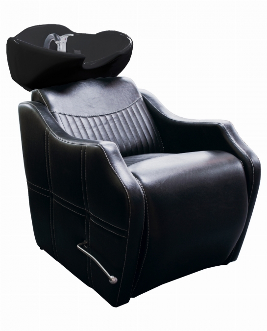 Den lyxiga schamponeringen Sakai Atlantis charmar alla! Stolens fjädrade sits och rejäla klädsel gör den mjuk och extremt bekväm att sitta i. Det höjbara fotstödet tryggar ännu bättre ställning. Den nya lutbara skålen ger dig ännu mer arbetsyta. Schamponeringen är klädd i hållbart skinnliknande möbelarelan. De ljusa stygnen gör ett snyggt intryck. Den nya bredare skålen underlättar arbetet! En skönhet som garanterat drar blickarna till sig och blir pärlan i din salong!
