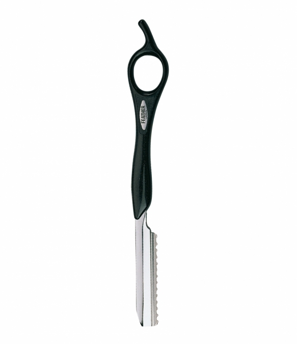 Använd Feather för att göra trendiga brutna frisyrer. Bladet är skyddat och går snabbt och enkelt att byta.